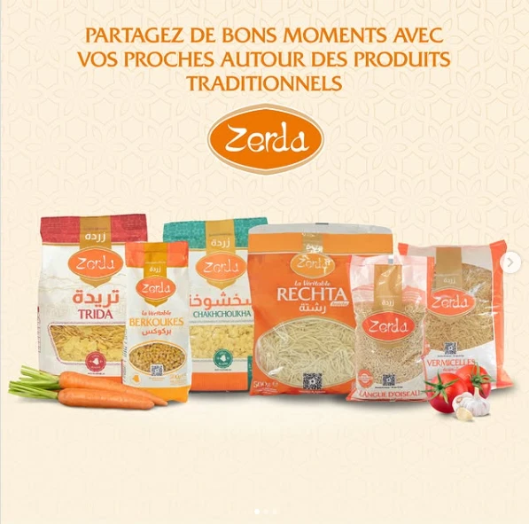 Nous croyons que la véritable essence de la cuisine algérienne réside dans des instants précieux, caractérisés par le partage et la convivialité. Zerda, première marque de pâtes algériennes de qualité supérieure, fusionne tradition et modernité. Inspirées par l’héritage culinaire riche et diversifié de l’Algérie, les pâtes Zerda incarnent un savoir-faire unique, si précieux aux yeux des amateurs de cuisine maghrébine. Fabriquées avec soin en Italie, pays renommé pour son savoir-faire inégalé dans la fabrication de pâtes, nos produits sont le fruit d’un mariage harmonieux entre les valeurs algériennes et l’excellence italienne.